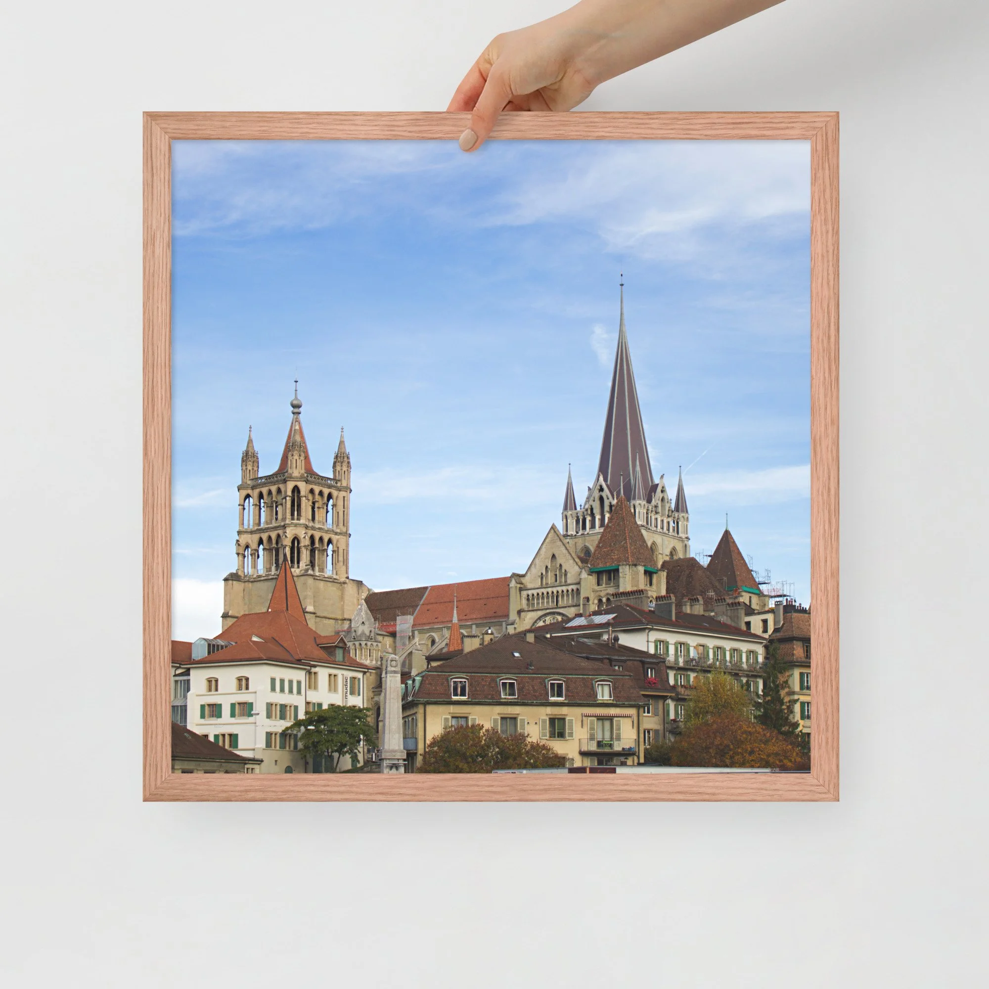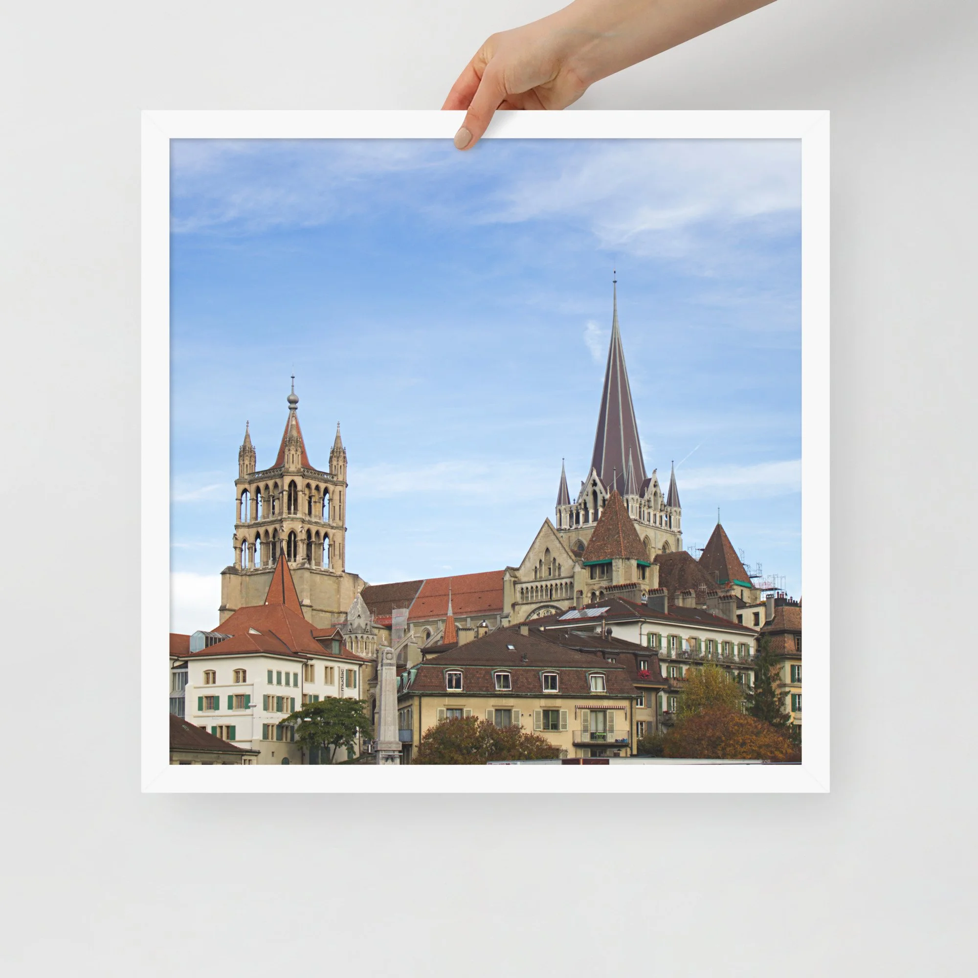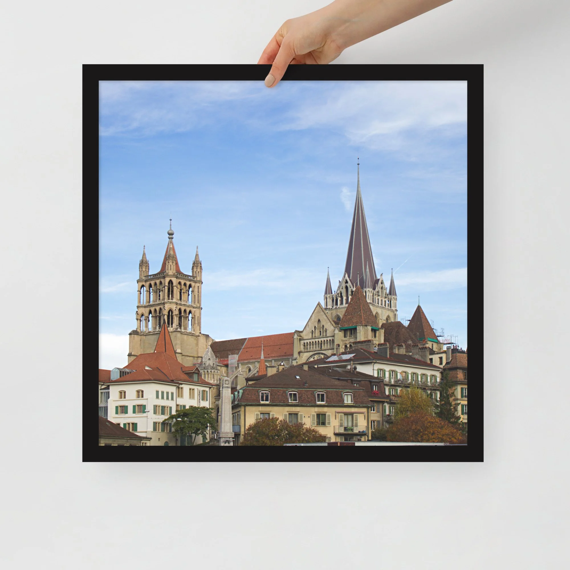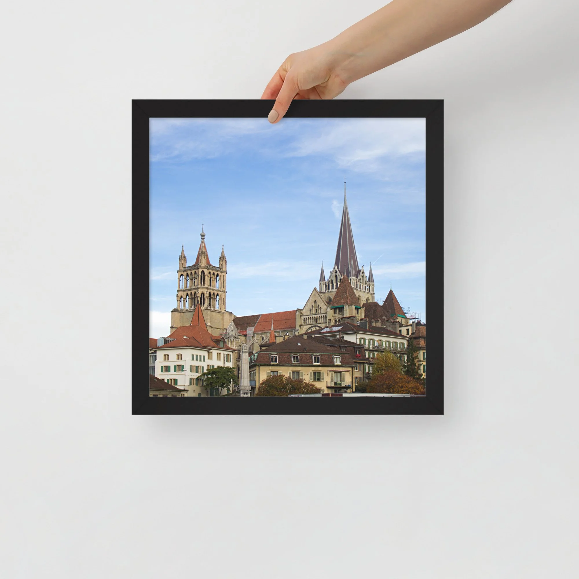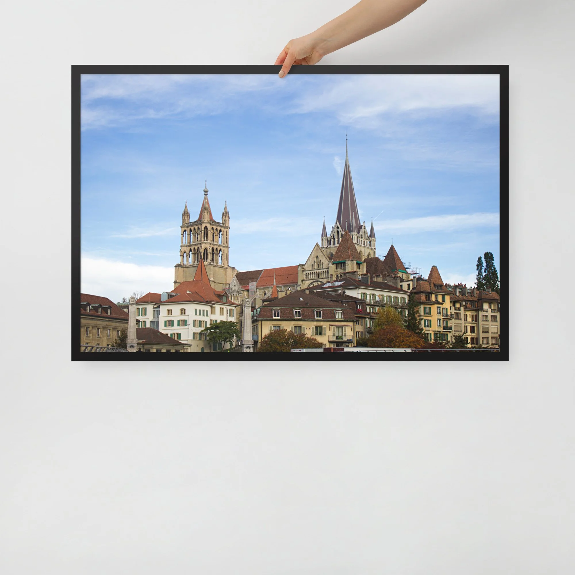 Apportez une touche élégante à votre intérieur avec ce tirage photo encadré des toits de la vieille ville de Lausanne. Entre lignes historiques, volumes superposés et ciel lumineux, cette image capture le relief singulier de la ville avec une approche sobre, nette et intemporelle.