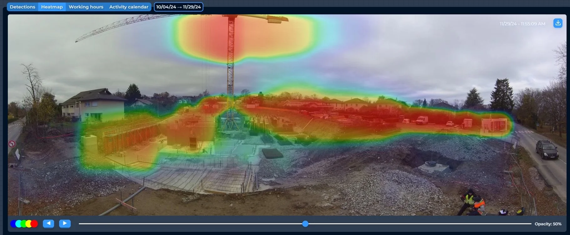 Rendu de l’activité globale des mouvements sur le site et des détections à l’aide d’une “heatmap”
