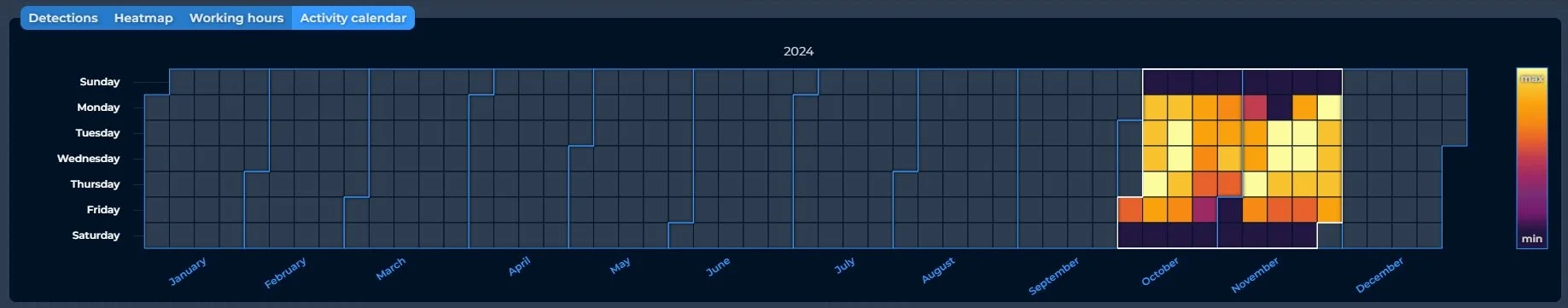Carte de chaleur ou Heatmap des activités et détections